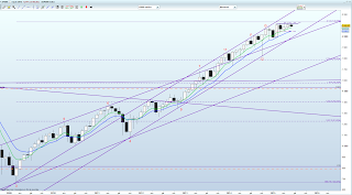 Comme anticipé l'indice a continué sa progression mais a une fois de plus bloqué sur ses plus hauts et consolidé pour revenir sur l'ancienne oblique de très court terme a/b/cet sur son EMA 50 mais en clôturant en dessous.